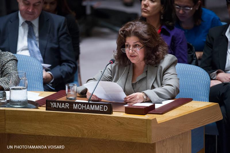 لفهم أزمة المرأة العراقية اليوم، لا يمكن تجاهل ما حدث منذ عام ٢٠٠٣. لقد تم تشكيل حكومة بناءً على سياسات التفرقة المفروضة على أساس الطائفة والعرق والجنس. فشلت هذه الحكومة بفرض سيادة القانون، مما سمح للمتطرفين بشغل مناصب في السلطة. قبل عشر سنوات، تحدثت النساء العراقيات إلى المجلس بشأن الوضع بالنسبة للمرأة. ماذا سيكون شأن العراق أن كنتم قد التزمتم بسماع تلك النداءات آنذاك وعززتم عملية سلام شاملة تشمل المشاركة الكاملة للمرأة والأقليات؟